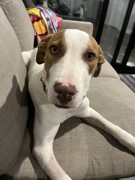 Calvin is a true people-dog and will want to be part of all the action. Movie nights? He'll happily snuggle on the couch. Heading out for an adventure-whether it's camping, a day at the beach, or exploring somewhere new? Calvin will be right there by your side, soaking up every moment with his best human friend.