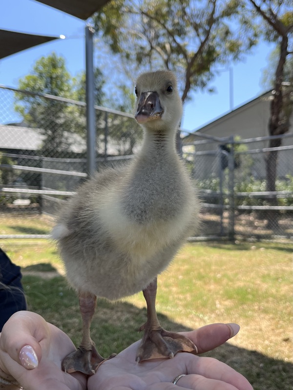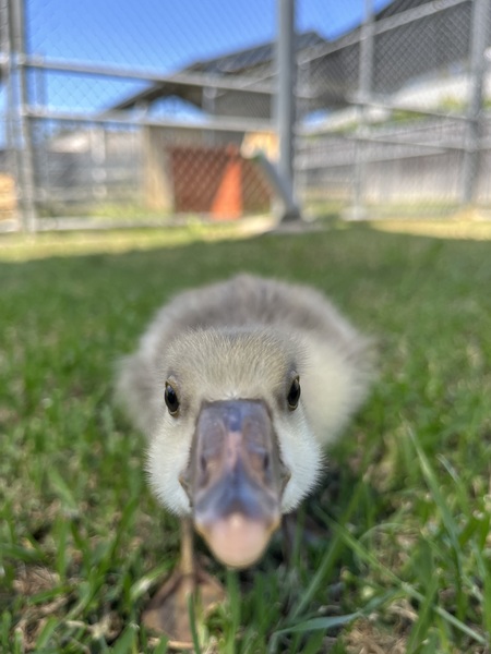 Ryan Gosling is a curious, cuddly little gosling with a lot to say! Full of personality and always exploring, he loves following his humans, splashing in water, and chirping his little heart away. He'll need a home with other waterfowl or someone who can spend lots of time with him.