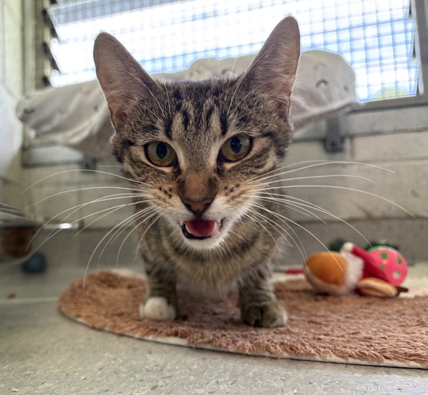 Marcie is a sweet and affectionate girl who loves attention but needs a little patience to feel secure. Sudden movements can startle her, and she may hide at first but she quickly returns for more cuddles. Marcie would thrive in a calm home with respectful children aged 8+ and adopters who understand shy cat behavior. She'll appreciate cozy hiding spots like an igloo bed or cat tunnel to help her feel safe. With slow, proper introductions, she may do well with another cat. If you're looking for a gentle, loving companion, Marcie is ready to steal your heart!