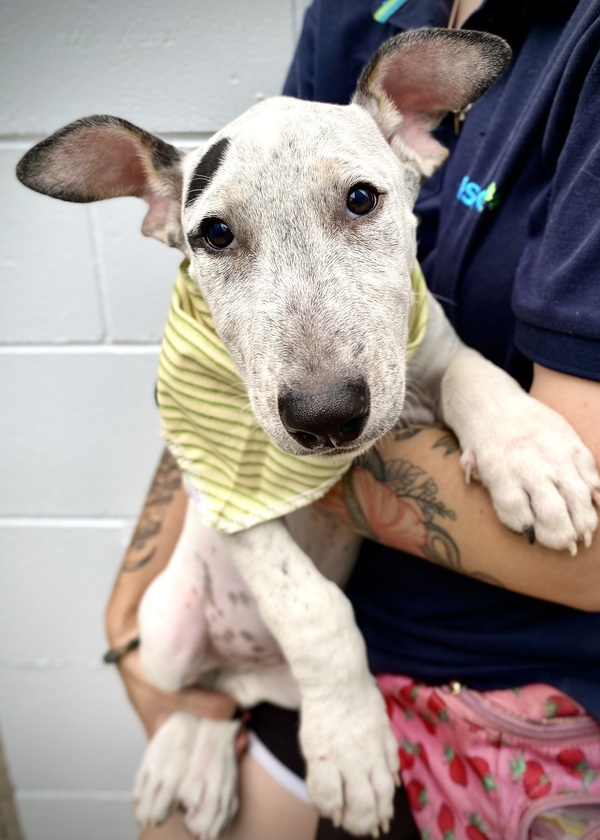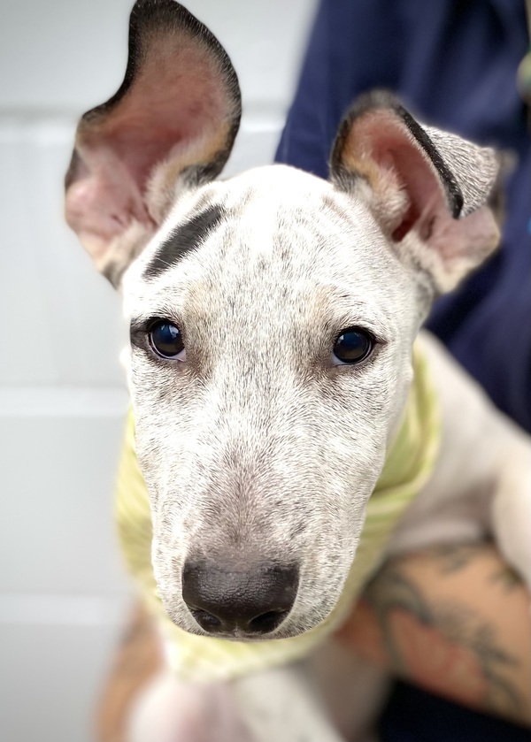 As an English Bull Terrier mix, he will have energy to burn & many adventures to have, the question will be, can you keep up with him?!