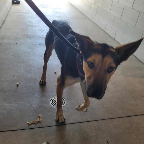 Hi I'm Bridie a super sweet working‑breed girl who can be a little unsure at first, but once she feels safe, her affectionate and playful nature shines through. She's looking for a home with plenty of space to move, explore, and stretch her legs, as she thrives on activity and purpose.