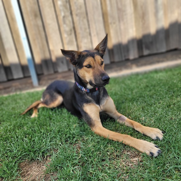 A home where she can enjoy both indoor cuddles and outdoor freedom would be ideal. Secure fencing is essential to keep this curious girl safe. Bridie can also live with a well‑structured, steady dog who can help show her the ropes.
