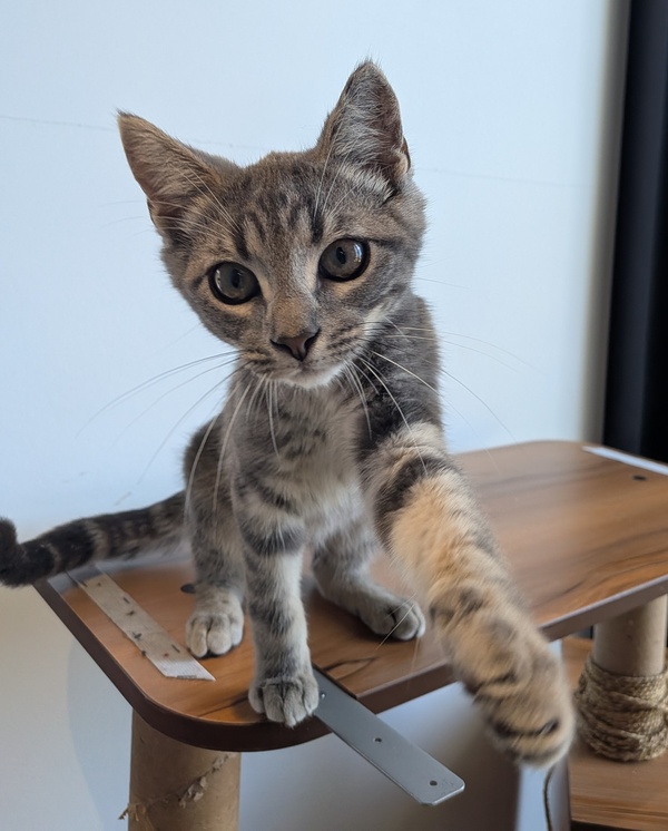 He's playful without being over the top, affectionate without being clingy, and brave enough to take life's surprises in stride. No matter your lifestyle, Tinsel is the kind of kitten who makes everything better-he's the perfect mix of fun and chill.