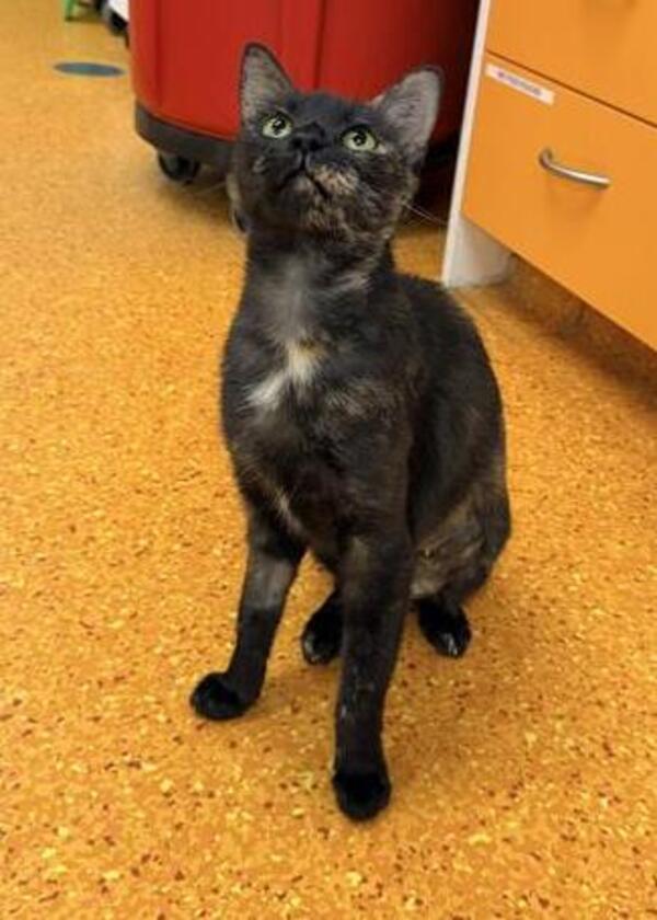 My name matches my mood-I'm absolutely dizzy with excitement at the thought of finding a forever home to call my own! I'm an easy-going, affectionate kitty who loves the simple joys in life: cozy evening dinners, lounging on the couch, and scooting around the house for a bit of exercise (usually in pursuit of a very sneaky imaginary butterfly or dust mite).