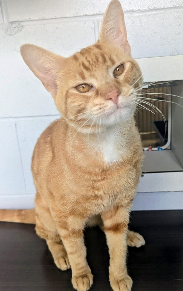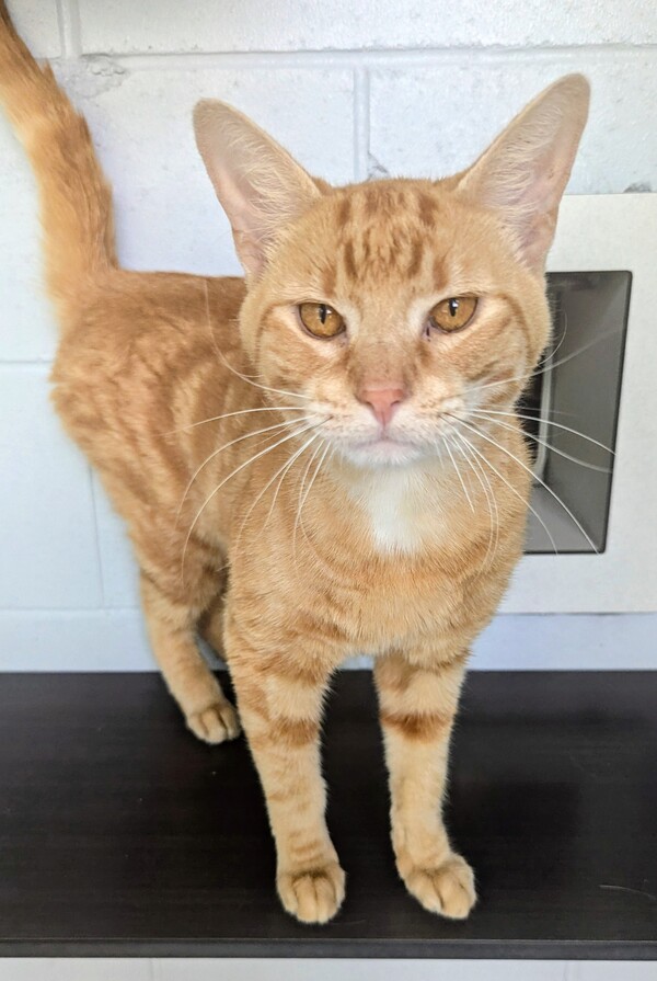 Meet Ollie, a gentle ginger boy with a heart full of sweetness and a shy streak that makes him all the more endearing. He may take a moment to warm up but offer him a few chin and cheek scratches and he'll quickly show his affectionate side. Ollie is well‑suited to an adopter who has an understanding of cat body language and can provide a quiet, low‑foot‑traffic home where he can settle in at his own pace, with lots of hidey holes to make his own. He would be best suited to older, respectful children and may also do well with a feline friend, pending slow and careful introductions. With patience, gentleness, and plenty of love, Ollie will blossom into a devoted and loving companion