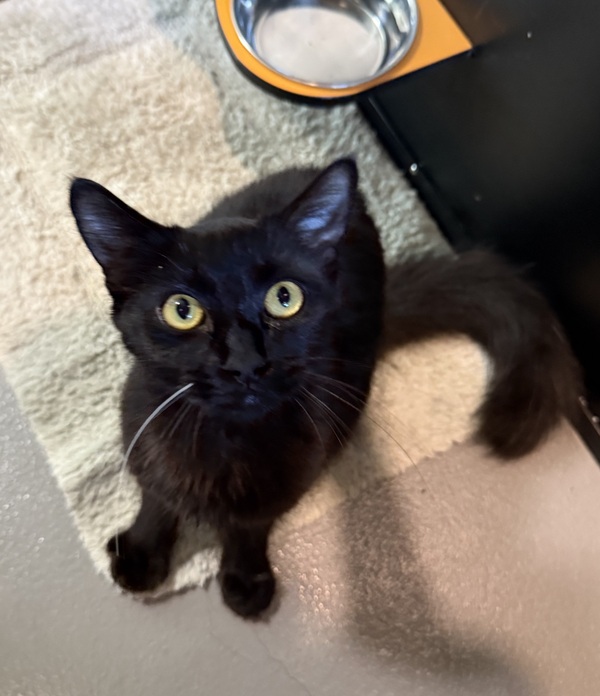 Esme is a beautiful adult black cat with a gentle, soulful presence - she doesn't take long at all to warm up to teh right people. Give her a moment, a soft voice, or a gentle hand... and suddenly she's right there beside you, ready to claim her spot as your new best friend.