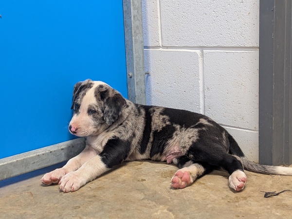 He's great with other dogs too and would just need to meet any future furry siblings at the time of adoption-he's a polite little gentleman like that. As he grows, Doc will enjoy going on walks, learning fun things in puppy school, and joining in on family adventures.