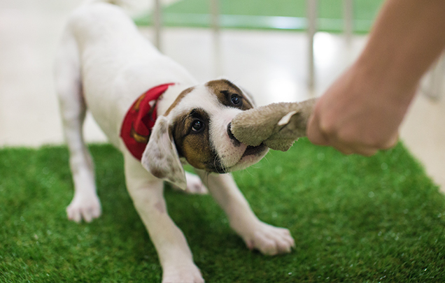 Grab out a rope toy get tugging! Tug of war is not only super fun for your pup, but it also lets them release frustration and allows them to set a goal - to win tug of war. Tug of war is a game to teach impulse control and a relationship building game with your dog. Practice teaching the dog to “give” on cue and trade the tug toy for a treat. If your dog can release the tug on cue, it makes the game way more fun and helps your dog learn impulse control at the same time. You can purchase a TONKA Mighty Chomp Rope Dog Toy at World For Pets.