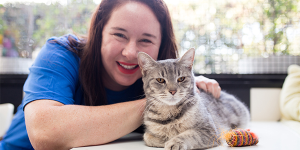 Mel Buttle enjoying the Black Cat Cafe with Penny