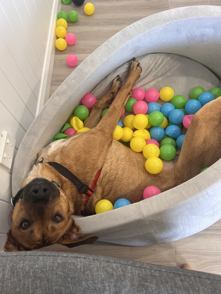 Food is one of Bronco's favourite things, so he'll thrive with enrichment feeders to keep him engaged during mealtimes. He can feel a bit worried in new environments, so his new family will need to take things slow while he settles, builds confidence, and forms trusting bonds with his people.
