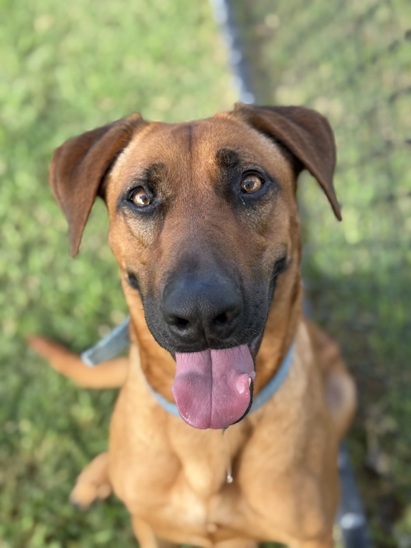 Shelby is a sweet, gentle girl with a big heart who is looking for a calm and loving home to call her own. This beautiful Rhodesian Ridgeback x Irish Wolfhound mix enjoys the company of people she trusts and will happily soak up attention once she feels comfortable.