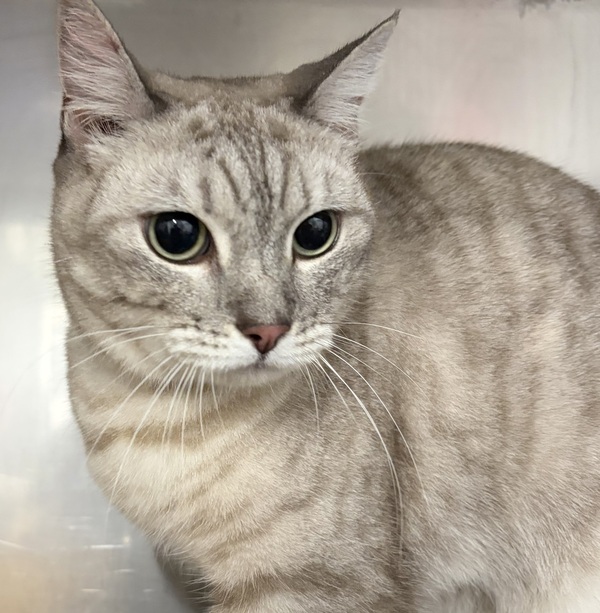 Lulu is a 5‑year‑old domestic short‑haired beauty, dressed in a stunning silvery grey tabby coat that shimmers in the light. Her eyes are a lovely soft green. Exotic in appearance and gentle in nature, she is truly a little treasure waiting to be discovered.