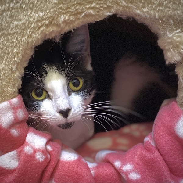 Lily is the most delightful little girl. There are so many adjectives to describe her - gentle, affectionate however shy, elegant, teeny-tiny, so loveable and adorable. She has a soft, silky black and white coat with beautiful yellow-green eyes. When we say teeny-tiny, Lily has a petite frame. Lily has had a lot happen to her in her life recently - she has come from being a 'homeless and hungry' feline to on her way to finding a loving, forever home. Please consider lily's needs for her future:-