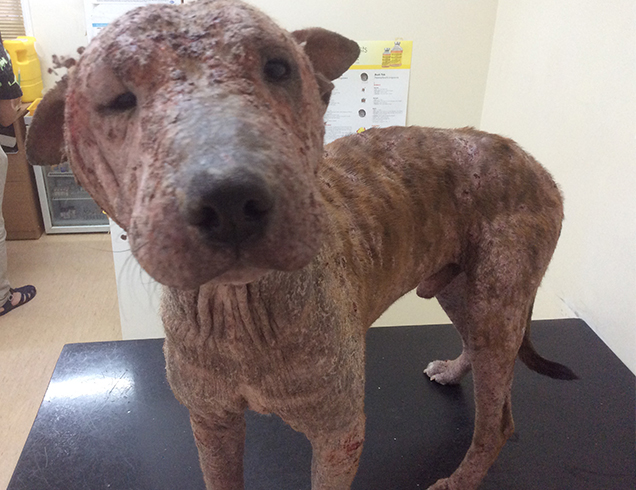His investigations resulted in a very sore Bobby coming into RSPCA care for urgent veterinary treatment. She had severe and painful Demodectic mange. It looked so terrible it’s hard to imagine how anyone could have ignored her pain and suffering for so long.
