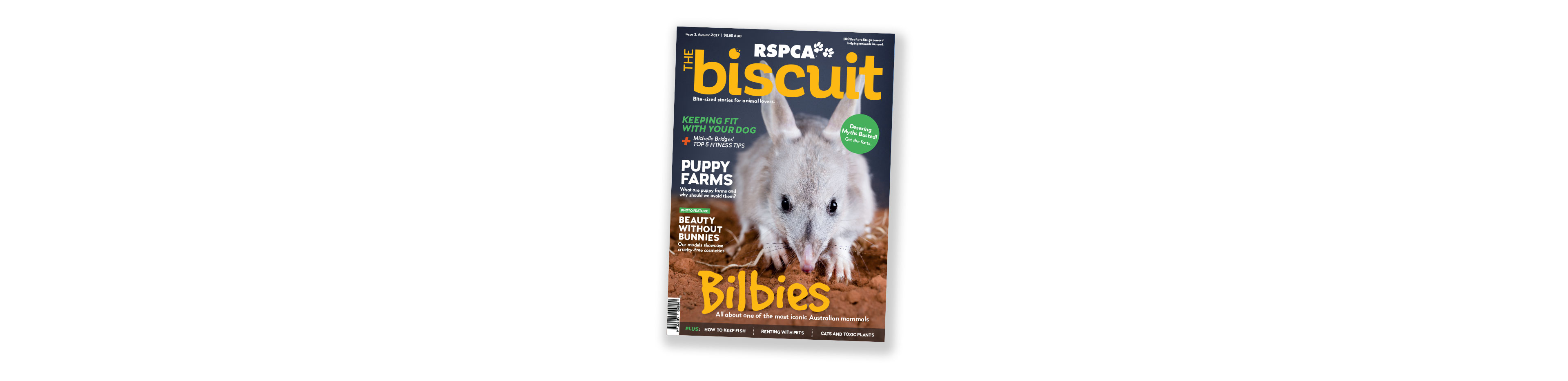 Issue 2 of The Biscuit is now available, and we’ve got even more stories to tell. This time, our feature explores the life of the elusive Bilby, and we have information on toxic plants for cats, puppy farms, and the benefits of pet ownership for kids.