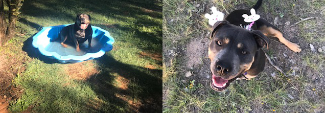 One of the main things that made us want to meet Trixie was her profile that said she loved water. This was NOT an understatement! Trixie constantly makes us laugh with her ability to seek out the smallest bit of water and the way she wiggles until as much of her can fit in is in!