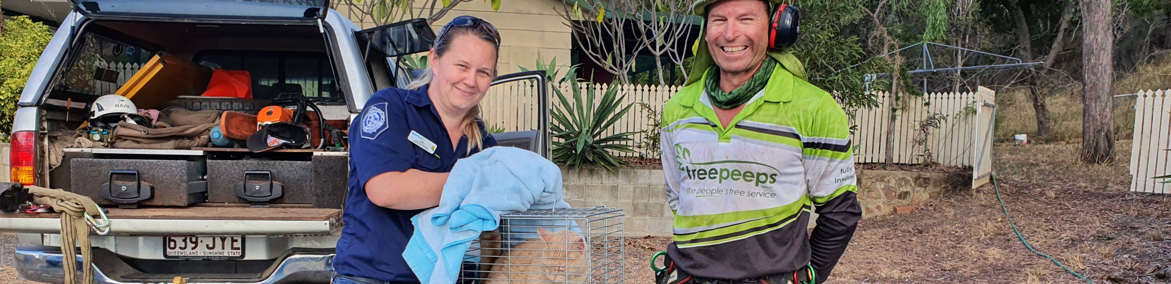 Our RSPCA Rescue Officers were called to assist, but weren’t able to rescue Klaus alone! With help from our friend and fellow animal lover Tony from TreePeeps, Klaus was finally rescued and returned to his very worried cat mum!