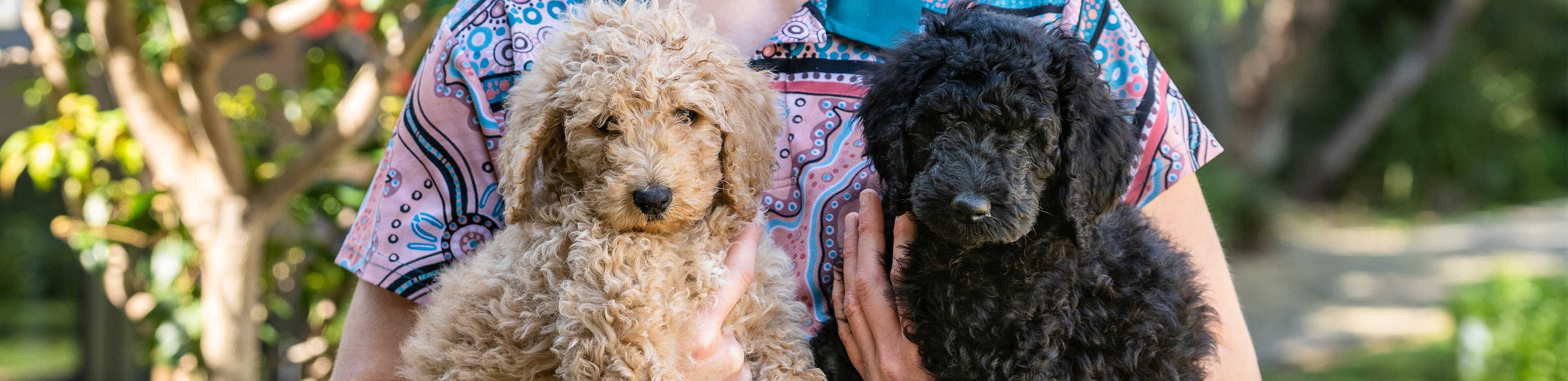 Lauren fostered two labradoodle puppies that were found dumped.