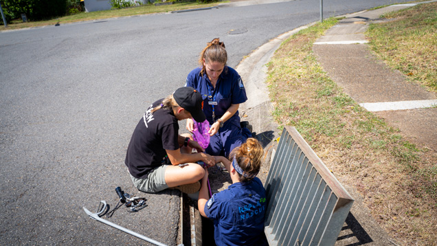 RSPCA Rescue Officers Sam and Chantel were called out to assist in retrieving the young. It was a hot day, so time was of the essence to rescue and reunite these kittens with their mum.