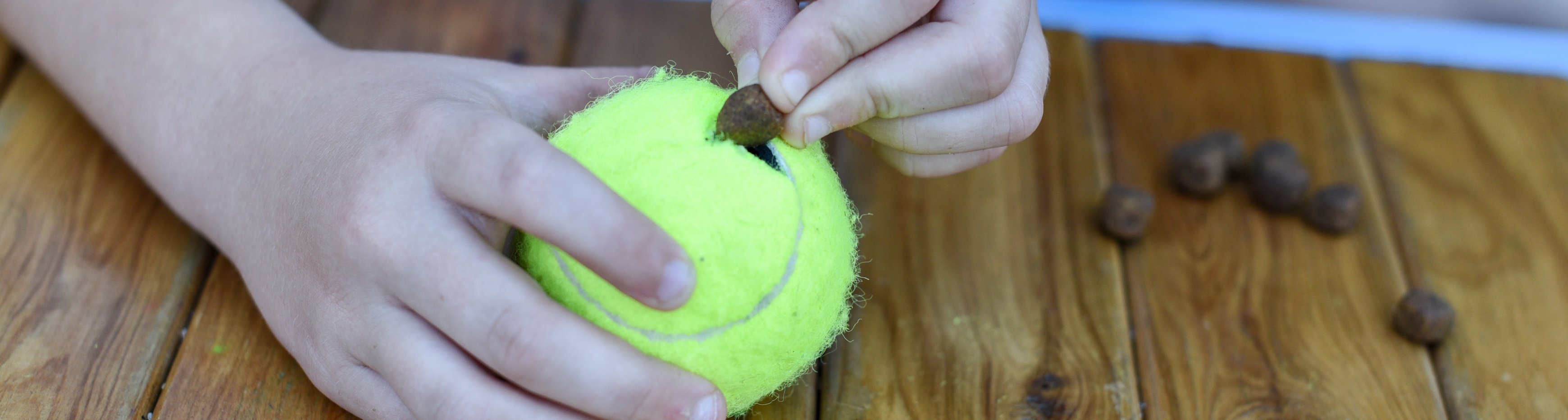 This tennis ball puzzle is a great way to occupy your pup to keep them happy and mentally stimulated.