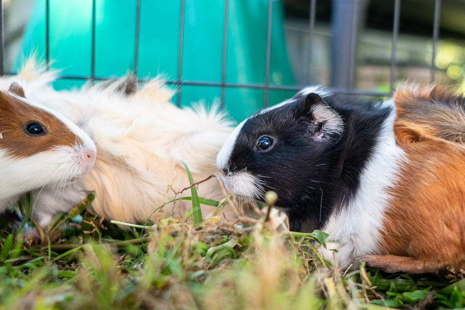 Rabbits and guinea pigs don’t always get along! So, if you’re outside of Queensland, it’s an important note to consider when you’re adopting a guinea pig. It’s best to keep them to the same species for a happy relationship.