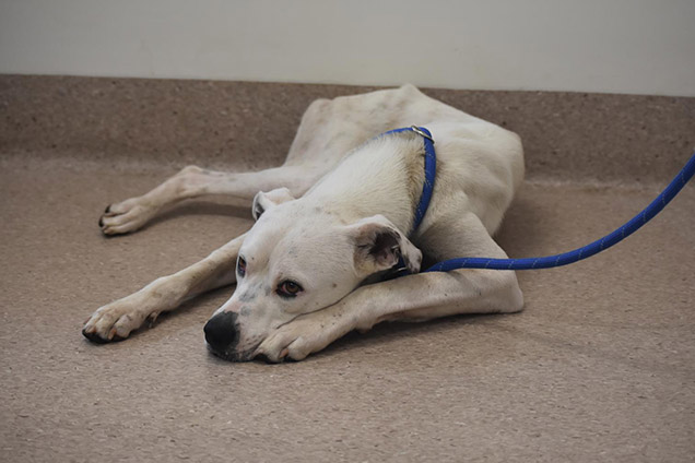 Snowy pictured above, waiting to be checked by RSPCA vet.