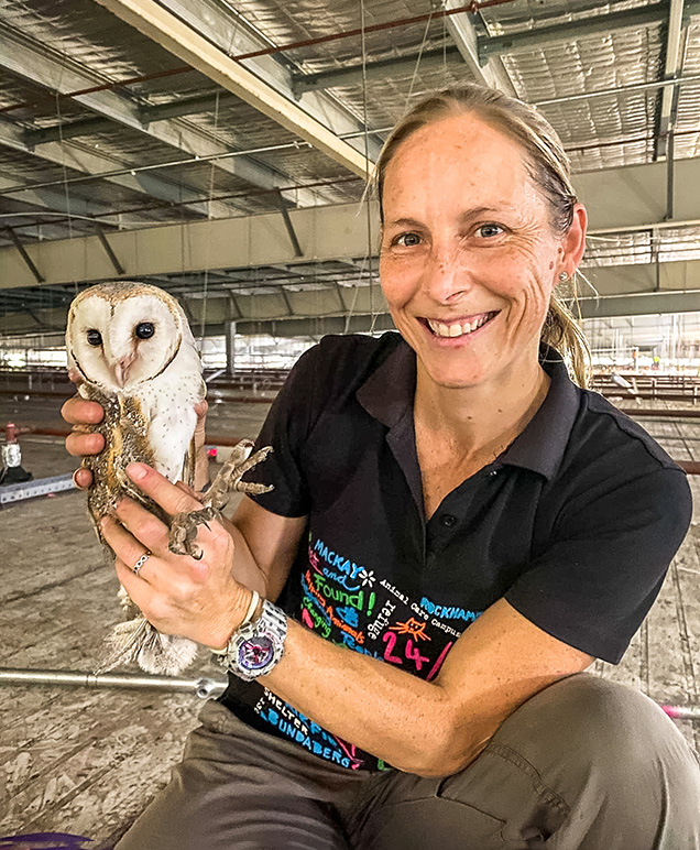 RSPCA Rescue Officers Jo and Chantelle were despatched to the Brisbane warehouse. They brought along their trusty netguns and dedicated rescue volunteer Nikki to help. This is the third time the Rescue Team had tried to set the elusive barn owl free.