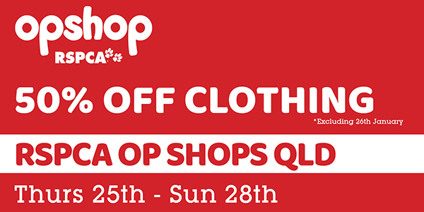 Only in-store at RSPCA Op Shops this Jan 25th, 27th and 28th.