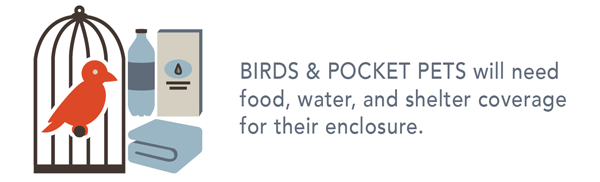 Birds & Pocket pets will need food and water, and shelter coverage for their enclosure: