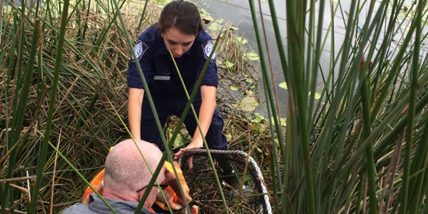 Rescue Officer Sellena recently had a call out to Warner Lakes in Warner about a swan that had fishing line hanging from its mouth. The 1300 ANIMAL caller was concerned there could have been a hook in its mouth or may have ingested one.. Volunteer Bob and Sellena headed out and upon arrival, David (caller’s husband) helped direct the team to the swan for rescue.