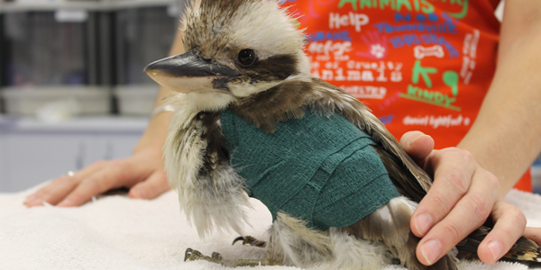 It was a close call for this kookaburra when she was hit by a car. Suffering obvious damage to her wing, she was brought to the RSPCA Wildlife Hospital in Brisbane.