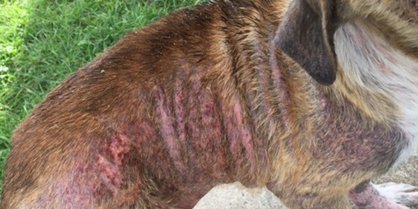 Head Vet, Anne Chester triaged little William and noted he had severe generalised demodectic mange – his little body covered from head to tail in hair loss, moist dermatitis with exposed skin and pustules. He was given treatments for his wounds, pain relief, given a medicated bath, and fed a nutritious meal.